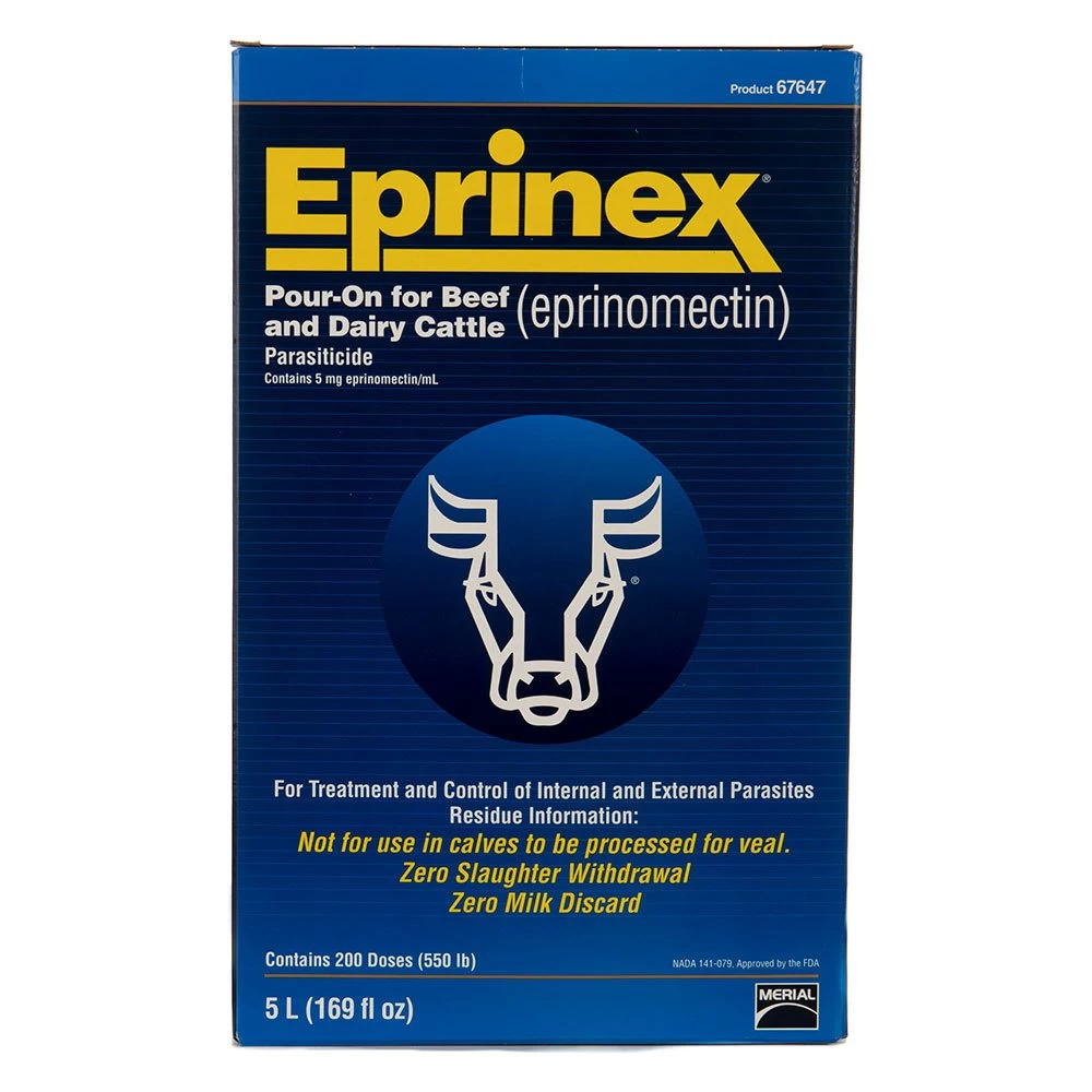 Eprinex pour on for beef and dairy cattle. Parasiticide (epinomectin). Contains 5mg epinomectin/ml. For treatment and control of internal and external parasites.