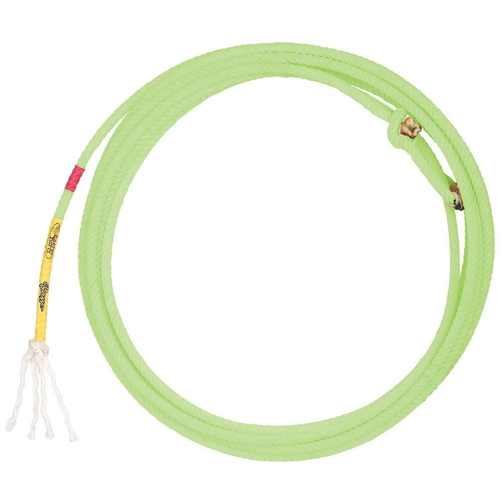 The CoreTX Swagger Rope by Cactus Ropes is a 4-strand heel rope made of 100% natural nylon, featuring a neon green nylon core center. This rope is also a part of the Relentless line by Trevor Brazile.