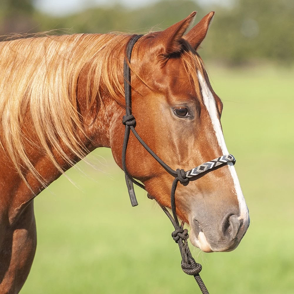 The beautiful Beaded halter is not just good looking but durable as well. Made of a durable Nylon/poly blend, this halter is made to last. Included with this halter is a 9ft lead rope.