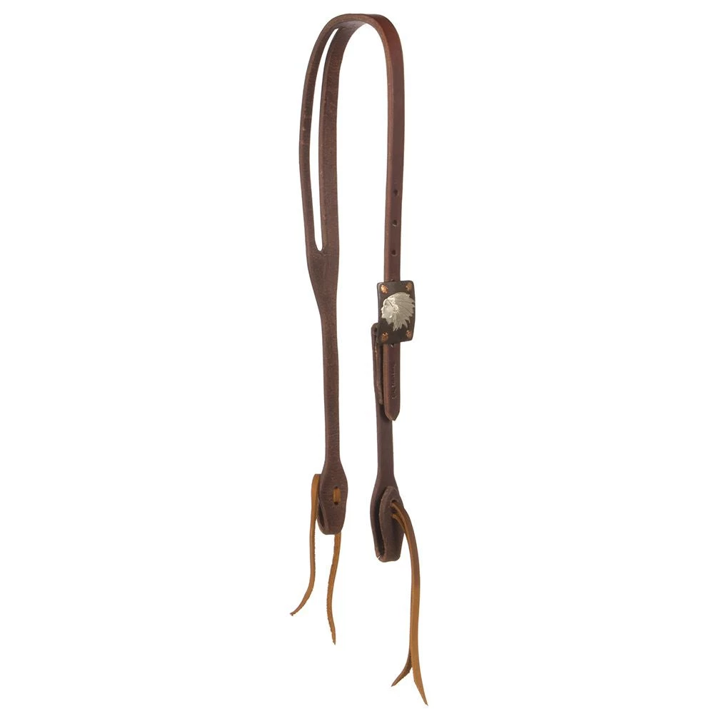 Cowperson 5/8 inch Harness Slit Ear Headstall With Square Indian Head Concho, 58SE-RC5