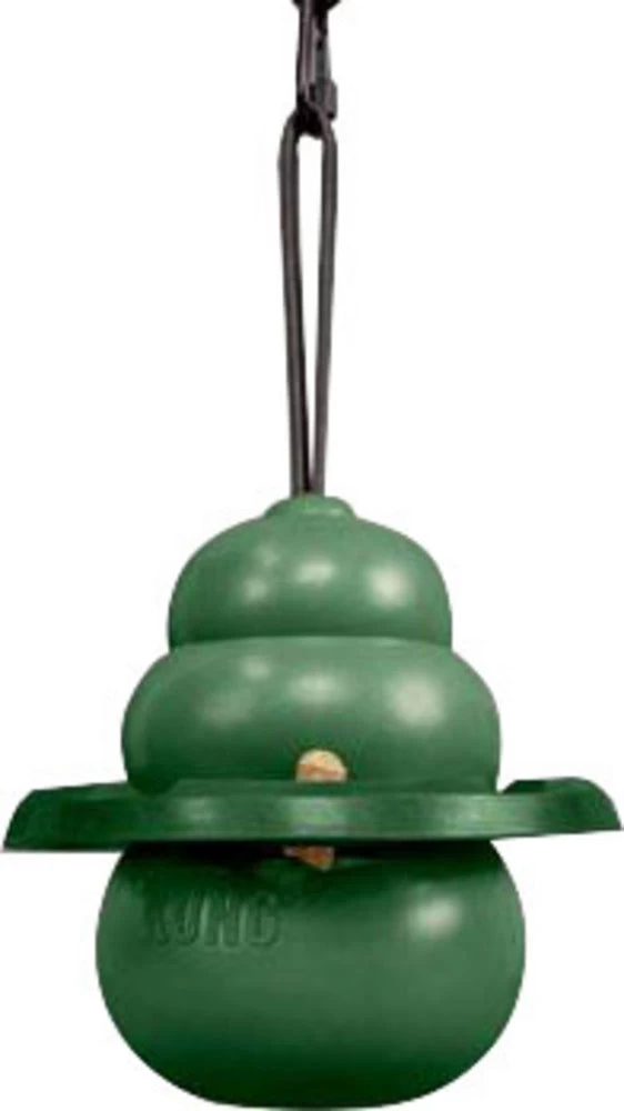 Designed to be hung from a single point and accompanied by a treat ring, this unique application of the KONG® Equine Classic provides mental stimulation and enrichment for all horses. The KONG® Equine Hanging Kit with Treat Ring challenges horses because it swings freely and away from wherever pressure is placed. The KONG® Equine can also be easily separated from the hanging kit by the carabiner for play in pastures.