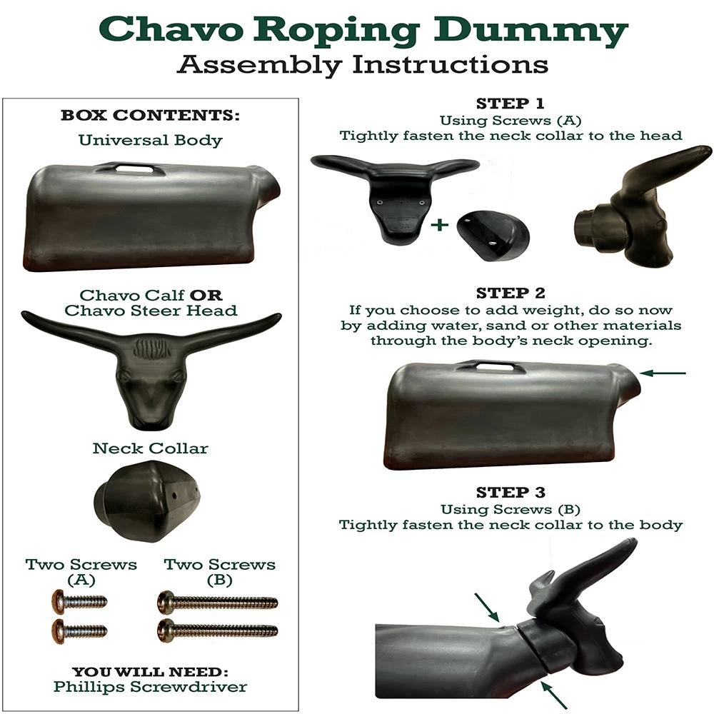 This Chavo the Calf Roping Dummy is an essential item for any practice pen! It features a unique design with a detachable head that can be filled with weighted materials such as sand and water for added stability. The detachable head also makes it easy to package and ship efficiently, saving you money. Plus, the convenient handle on its back makes it easy to move around your arena or take on the road.
