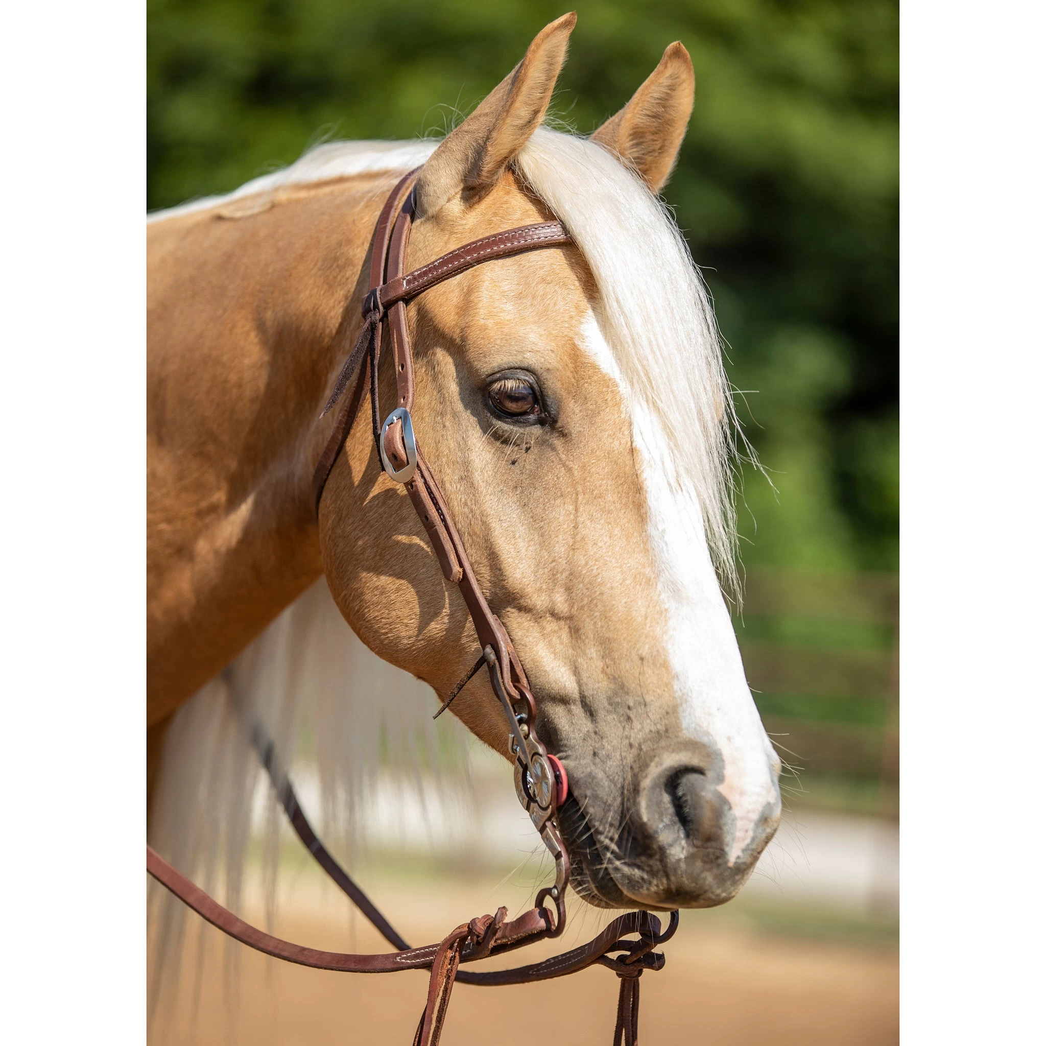 The NRS Tack Ranch Hand Oiled Straight Browband Headstall is built for the one looking for a simple harness leather headstall that is built out of quality materials. Handcrafted in the USA from premium Hermann Oak leather dressed out with stainless or brass hardware. Dark Oiled to increase longevity.