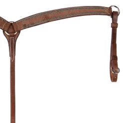 One of the most traditional looks on the market, this roughout breast collar really brings out the a classic look without being flashy. The turquoise buckstitching shines very well with the chocolate finish. This breast collar is also ready to use, it is equipped with quality Dee Rings and Tugs.