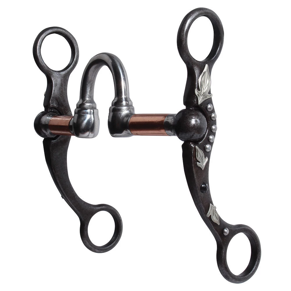 This weighted cheek allows for more control and added poll pressure while maintaining clean lateral movement. The cheek pieces features a decorative a silver and colored stone design. Correction mouthpiece.