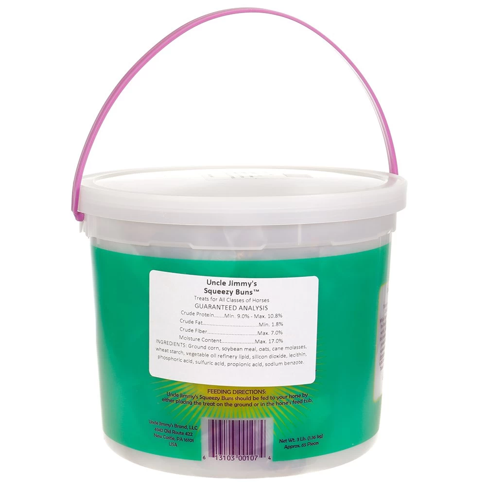 Made with all natural ingredients and no artificial flavors or colors, Uncle Jimmy’s Squeezy Buns for horses are a delicious and nutritious treat! Individually wrapped to preserve freshness and eliminates mess in your pockets.